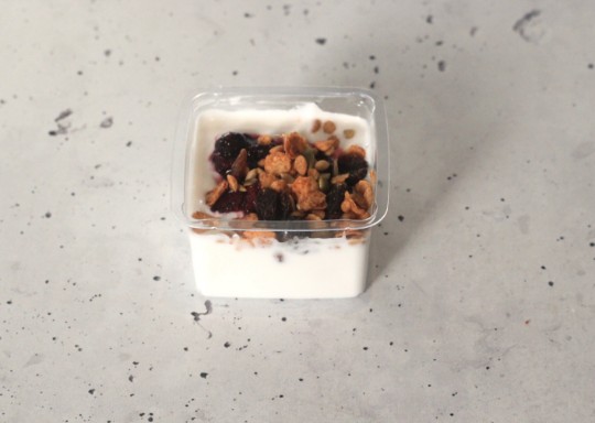 Vanilla Greek yoghurt, raspberry coulis, granola (gf) (DEL)